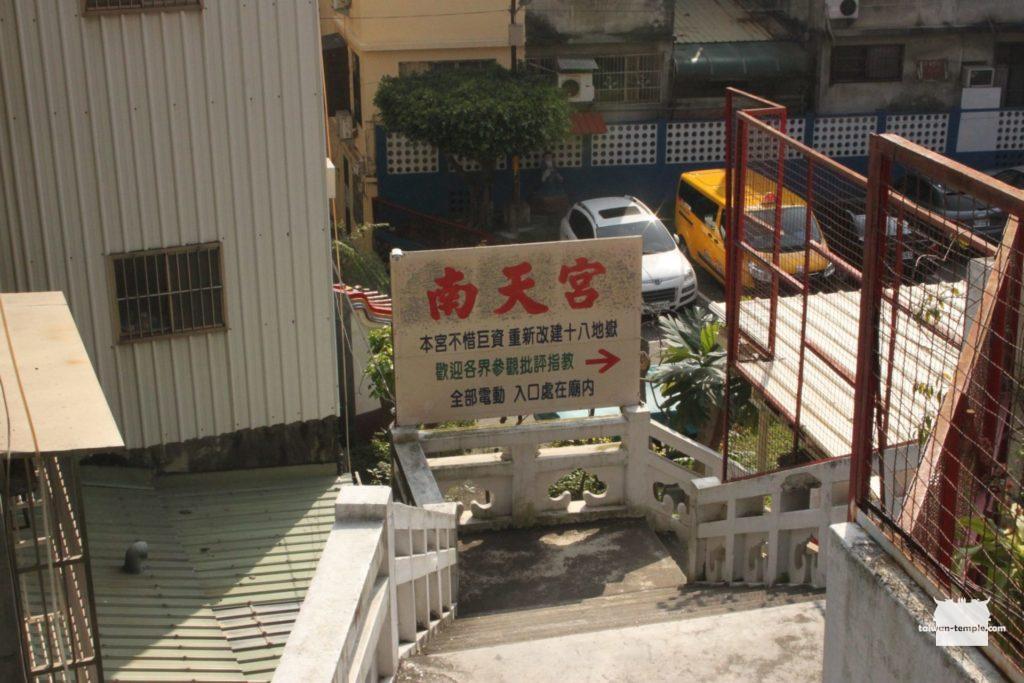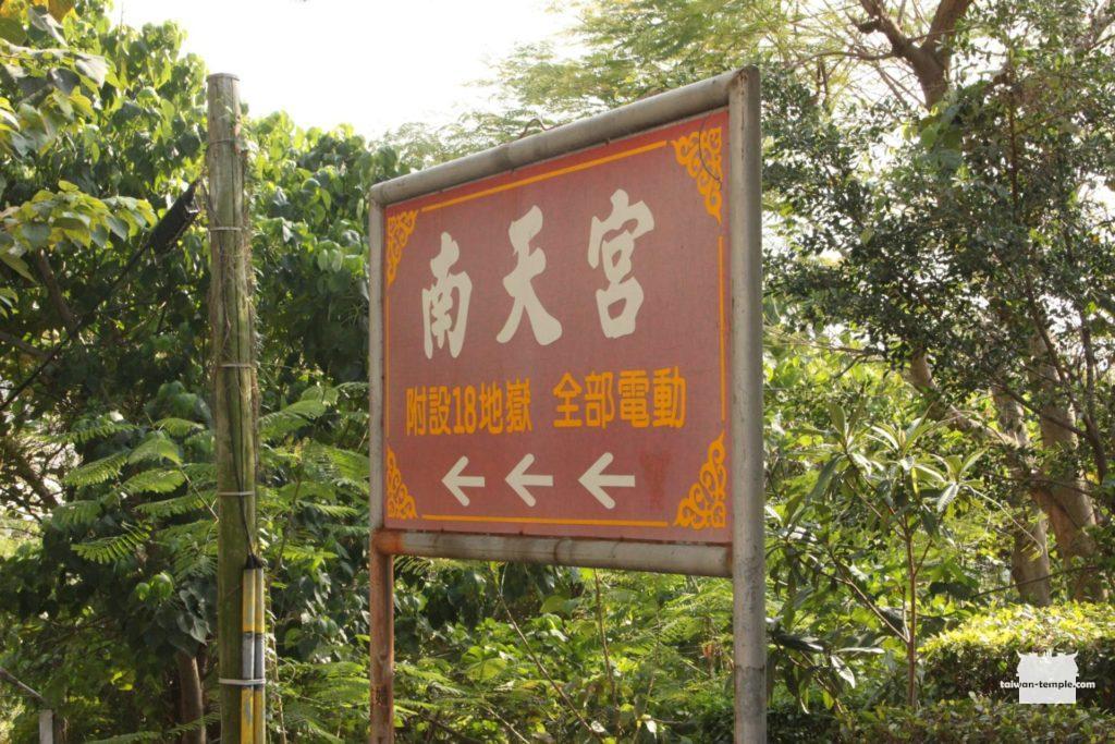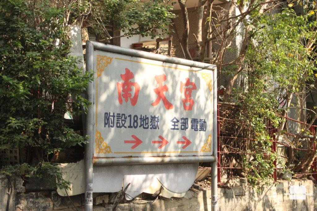 八卦山への道を上がっていくと、南天宮十八層地獄の看板が現れるのでそれを右に下れば目的地だ