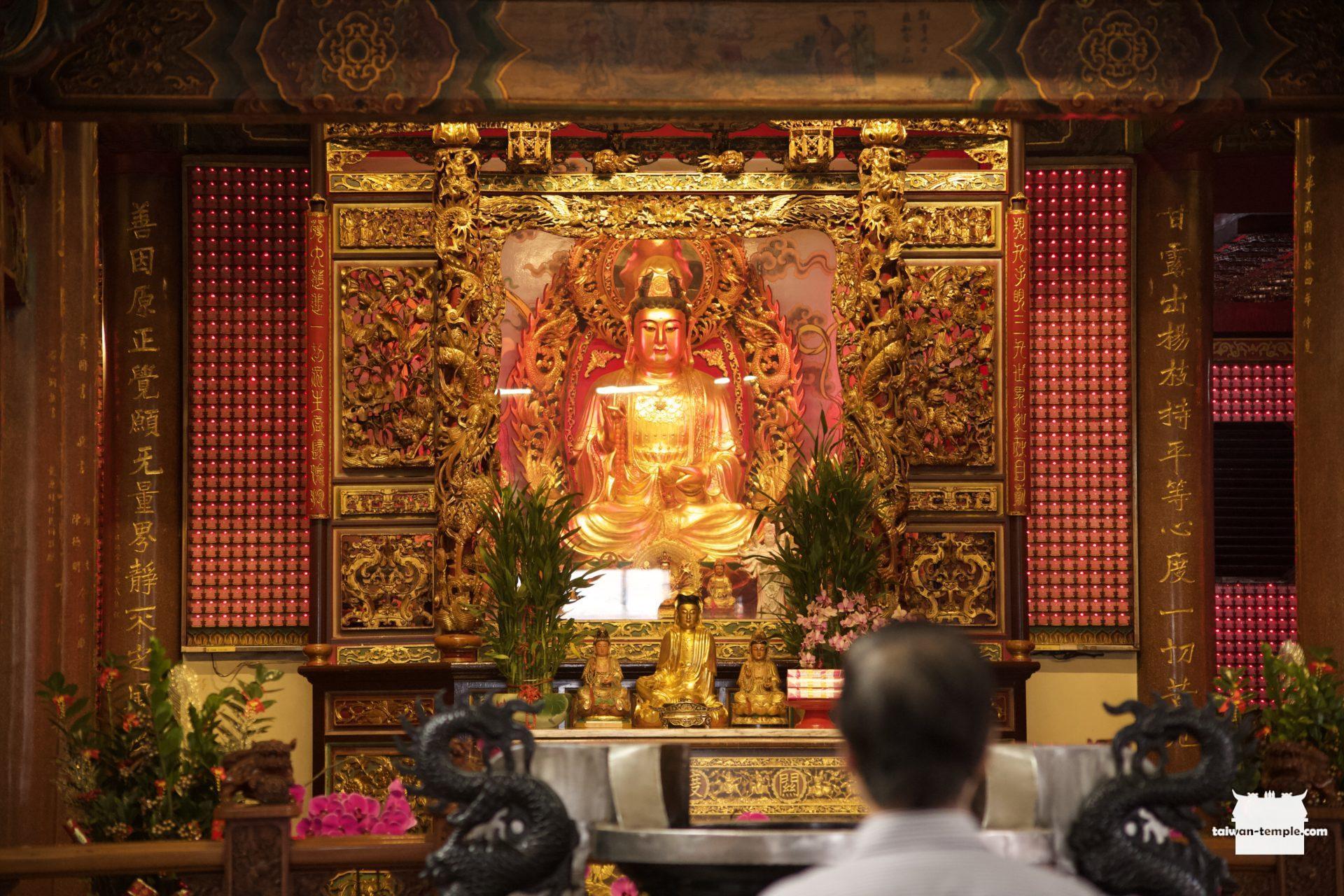 正殿の左隣に三将軍廟、右隣には1Fに地蔵王菩薩(冥界の使者)の祀られる功徳堂、2Fに薬師仏祖の祀られる廣渡寺の入った建物がある