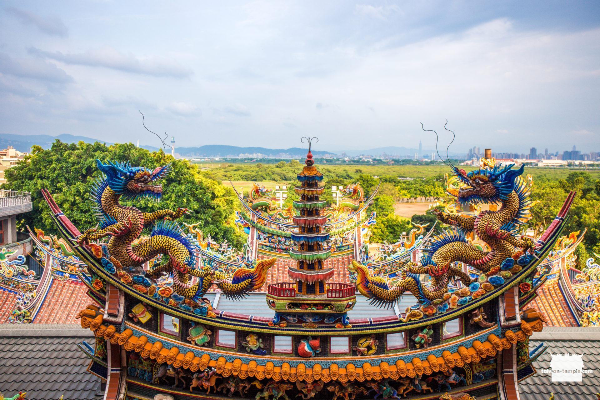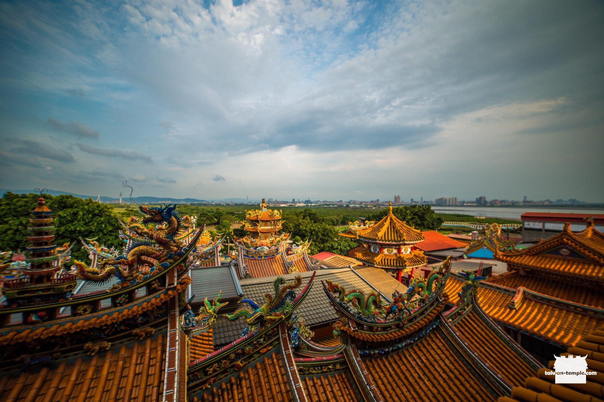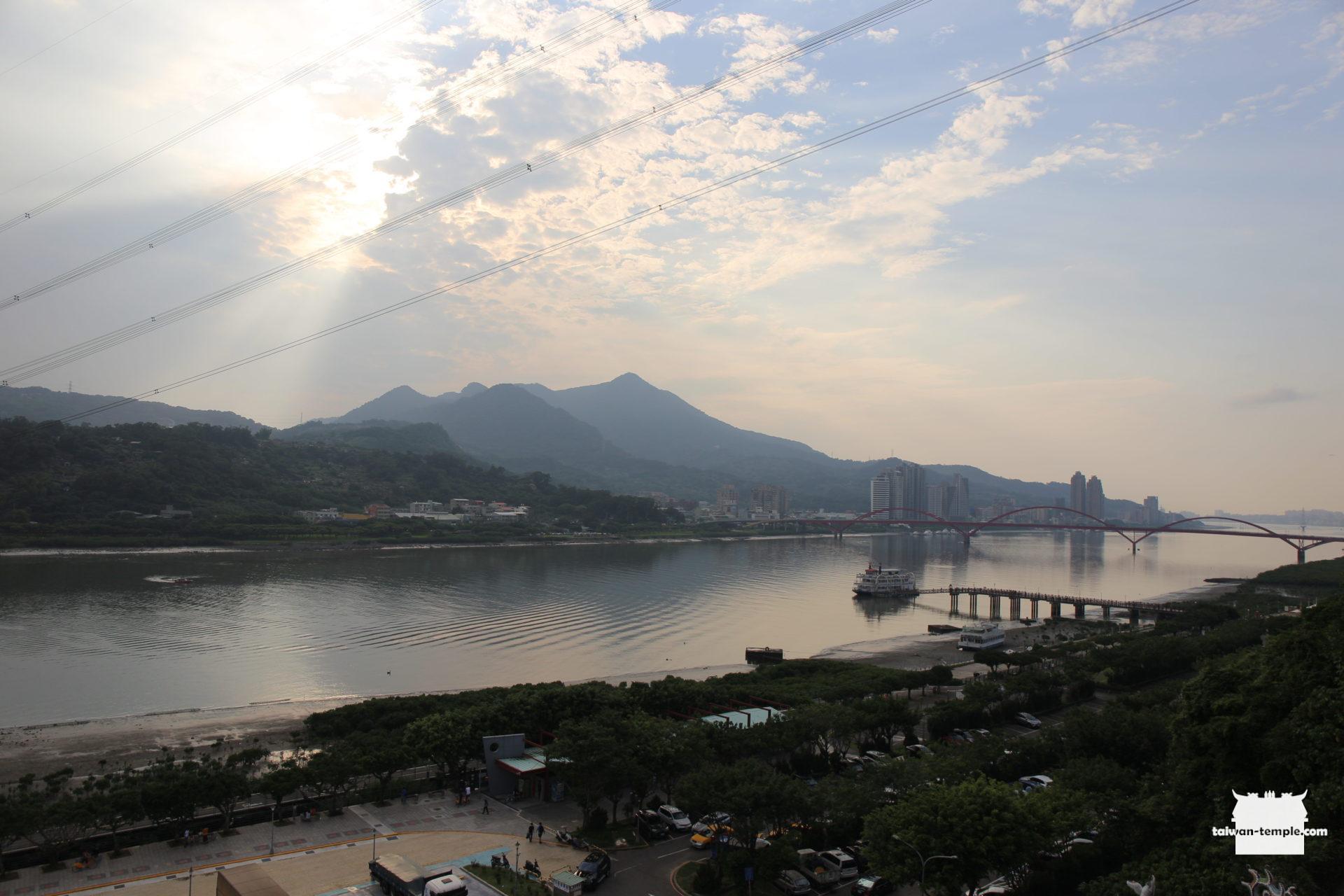 テラスからは、道観の美しい屋根や彫刻を見ることができ、その先には淡水河を挟んで台北市街が見える。遠くは台北101まで見ることができる。